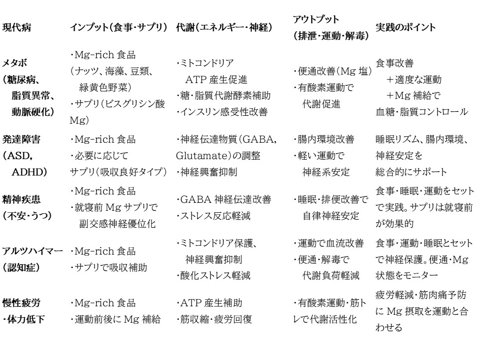 現代病とMg活用マトリックス